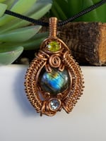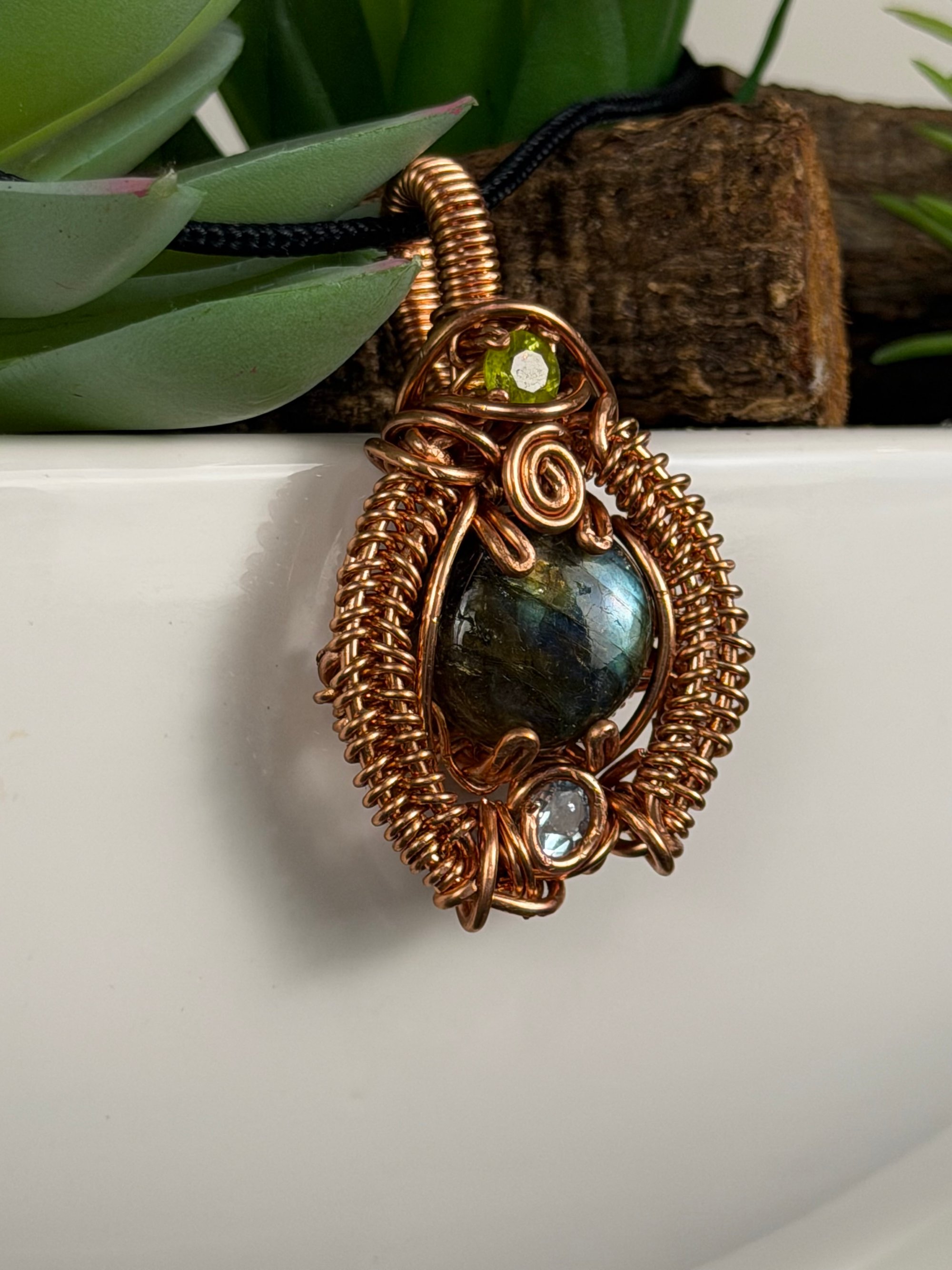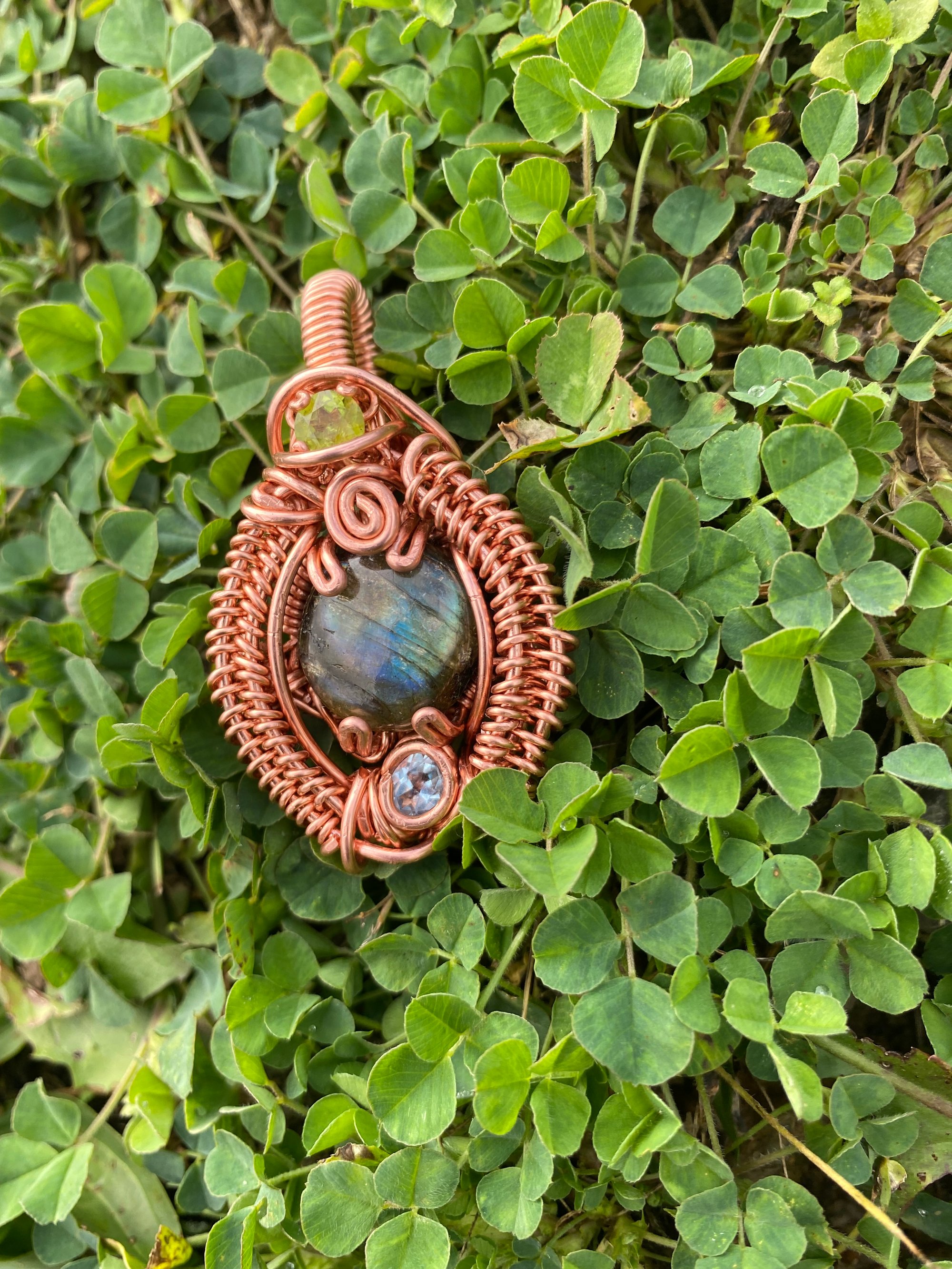 Handmade Copper Labradorite Peridot And Aquamarine Pendant - Crystal Necklace